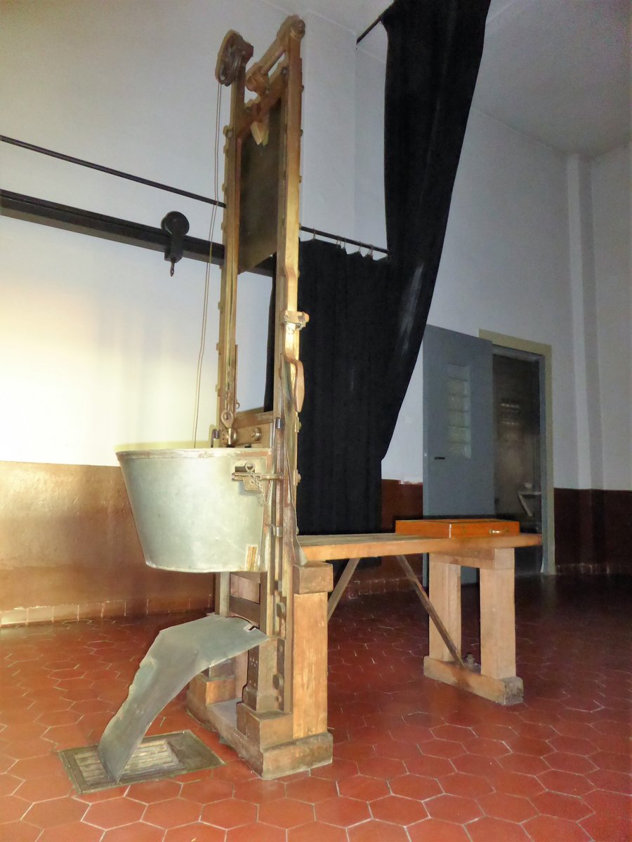 Die meisten der vom RKG gefällten Todesurteile wurden durch Enthauptung vollstreckt. Bis August 1940 fanden die Hinrichtungen in der Haftanstalt Berlin-Plötzensee37 statt, ab dann im Zuchthaus Brandenburg-Görden. Hinrichtungen in den Richtstätten erfolgten fast wie im Akkord und Einzelvollstreckungen wurden aus Kostengründen kaum vorgenommen. Zudem sollten zum Tode verurteile Personen erst kurz vor der Vollstreckung des Urteils in den Richtstätten eintreffen. Ein Gefängnispfarrer aus dem Untersuchungsgefängnis Dortmund beschrieb die Hinrichtungspraxis38: „Der Verurteilte hatte sich an ein hochgeklapptes, am Kopfende ausgekehltes Brett zu stellen. Ehe er sich besinnen konnte, warfen ihn die Henkersknechte auf das Brett, das in einem Scharnier befestigt war und um 90 Grad umschlug (…) In der selben Sekunde drückte der Scharfrichter auf den Knopf. Das Fallbeil sauste herab, der Kopf des Verurteilten flog in einen bereitgestellten Weidenkorb. Der Blutverlust war ungeheuer, die Beine des Sterbenden zuckten jedesmal so zusammen, daß die Holzpantinen im weiten Bogen fortgeschleudert wurden.“39