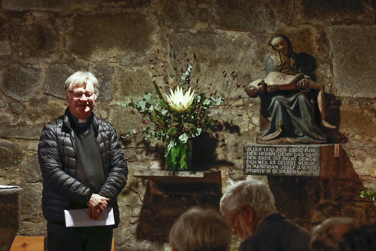 Pfarrassistent Josef Danner begrüßte unter den 50 Gästen der vollbesetzten Werktagskapelle von St. Theresia u. a. Bischof Manfred Scheuer, Landeshauptmann a. D. Josef Pühringer, Domprobst Wilhelm Vieböck, Martin Füreder, Fachbereichsleiter Priester und Diakone in Pfarren und Martin Kranzl-Greinecker vom Mauthausen Komitee Österreich.