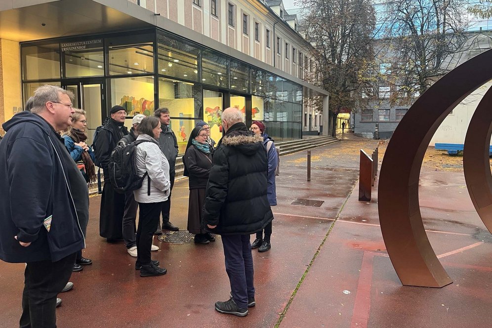 Der Tag endete mit einer Reflexion und einem thematischen Stadtrundgang durch Linz, geleitet von Andreas Schmoller und Dr.in Verena Lorber vom Jägerstätter Institut bei dem Spuren von Widerstand und Erinnerung im Stadtbild sichtbar wurden.