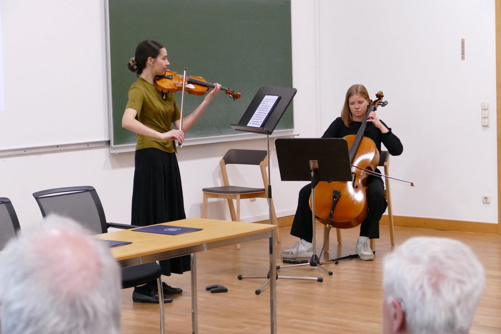 Musikalisch stimmungsvoll gestaltet wurde der Abend von Sara Spek Jezernik (Violine) und Veronika Löberbauer (Celllo) von der Anton Bruckner Privatuniversität.