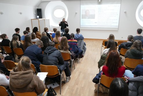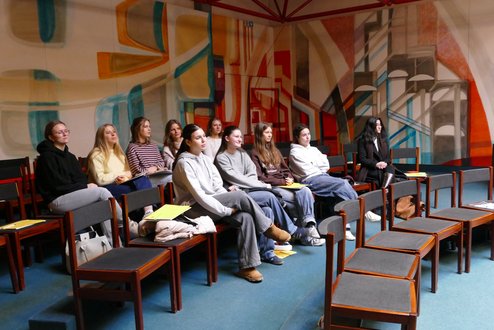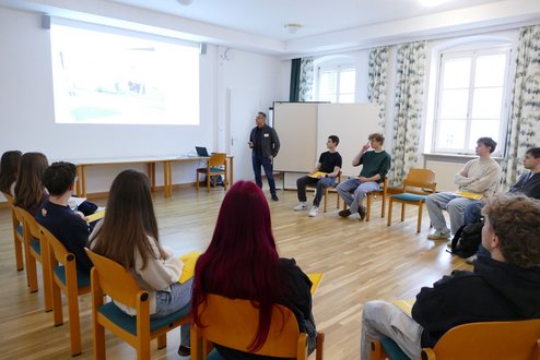Nach der Begrüßung durch Michael Münzner, Leiter des Bereichs „Verkündigung und Kommunikation“ der Diözese Linz, und Andrea Winter, Religionslehrerin am Linzer Ramsauergymnasium, konnten individuell gewählte „TheoTalks“ besucht werden. Die zwölf Workshops, geleitet von Mitarbeiter:innen aus unterschiedlichen diözesanen und kirchlichen Einrichtungen, ermöglichten den Schüler:innen, Arbeits- und Berufsfelder anschaulich und praxisnah kennenzulernen. Dabei wurde die ganze Vielfalt und Spannweite der Tätigkeitsbereiche sichtbar: Sozialeinsätze im Ausland ebenso wie die Arbeit in Caritas und Gesundheitswesen; das Wirken in Klöstern, in verschiedenen Feldern der Seelsorge – ausgerichtet auf spezifische Bedürfnisse, kompetent und sensibel für konkrete Lebensrealitäten – sowie im Kontext einer zeitgemäßen Jugendarbeit, die den Fragen, Problemen und Herausforderungen dieser besonderen Lebensphase Rechnung trägt; oder die Arbeit mit Archivalien und digitalen Medien und der professionelle Umgang mit Kirchen als gleichermaßen religiösen Erfahrungsräumen und Begegnungsorten mit alter und neuer Kunst.